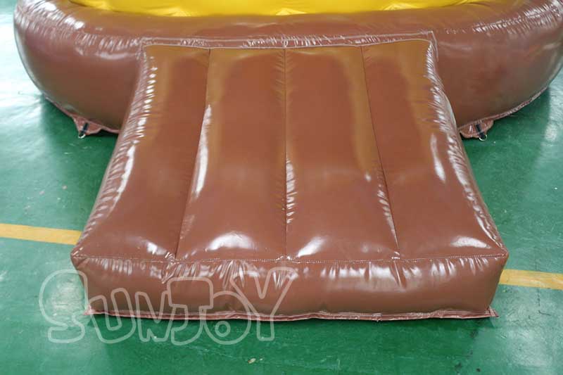 Many people like to use emoticons in email or on the Internet, they are usually very funny. This crying face emoticon design inflatable dome is also very funny and playful for children. Designed with yellow and coffee main colors, giant blue tears on the smiling face, like a face with tears of joy. Two mesh netting windows on both sides, kids can jumping can playing happily inside this inflatable bouncer. Very eye-catching and likeable.