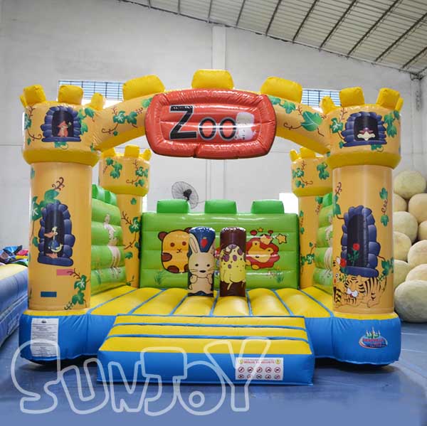 This is another excellent design of bounce house for kids, with a zoo theme and many cute animals printing on the walls. The inflatable bounce jumper is very sate and soft for little kids, they can bouncing inside with friends and full of imagination. And the yellow, green and blue colors gives the children friendly visual experience. They can imagine playing with cute animals in the real zoo. Provides hours of backyard fun.