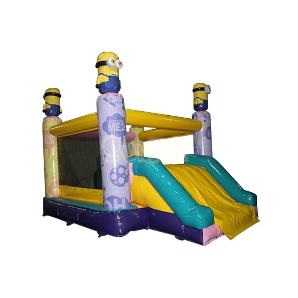 Looking for inflatable bounce houses with fun themes for kids? This Minions theme is very popular with children.This minion bouncy casle is designed with inflatable Minions on the top of the pillars, and Minion characters printing on the pillars and walls, and features with some fun inflatable obstacles and slide. Kids can be entertained for hours with this exciting jumping house. It's suitable for the backyard parties, carnivals, fairs and mall activities.
