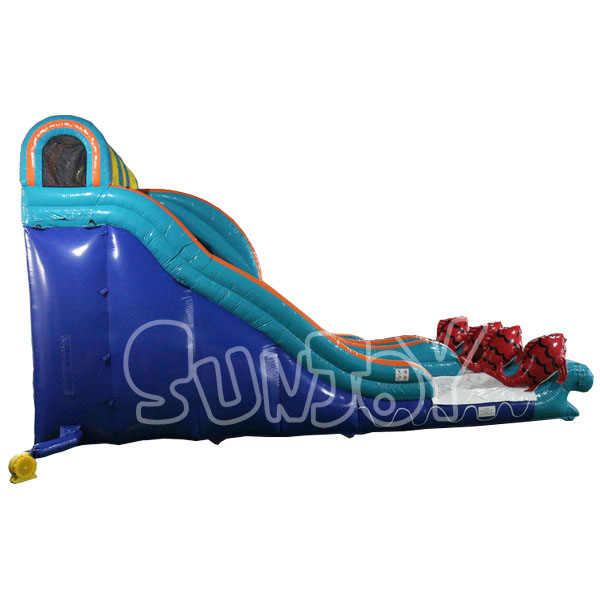 The Big Kahuna inflatable water slide is perfect for any outdoor and indoor activities, double lane design makes this inflatable game double fun for players. Riders climb up the 17ft top and slide down on both sides to the ended pool at the bottom with four beautiful fish. This impressive inflatable water slide brings extreme fun for kids and adults of all age in summer. Perfect way to get wet and enjoy a cool day. See the