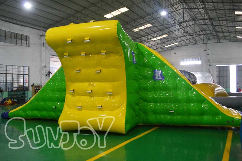 This water action tower is a big floating mountain with multiple challenges for your water park, four sides structure design, two for climbing and two for sliding. Kids and adults and also jump into water from this tall water platform. Bottom with strong D-rings, can be connected to other suitable water games. The whole water action tower is made of top quality 0.9mm PVC materials, color and size can be customized according to your needs. Comes with ropes, repair kits and safety instruction.